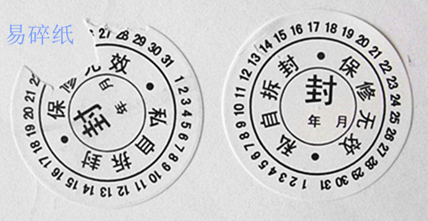 易碎纸标签通常运用于一些价格高,质保责任大,质保时间准确性非常高的产品上面,比如:汽车配件、电脑配件、食品药品等产品上面,易碎标签直接关系到产品售后服务的质量和厂家的经济利益,采用易碎纸防伪材料能有效的避免各种损失和纠纷的发生。