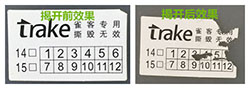 易碎防伪标签是采用特殊的防伪材质制成的。顾名思义,就是将标签贴在产品包装上,它具有粘贴后不能完整剥离,所以最大的优势就是防伪效果好,一次性使用,不能重复利用,防转移,在防伪技术上大大增加了不法分子批量造假的难度。