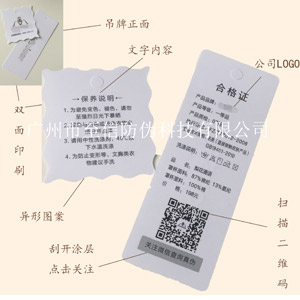 现在吊牌正在以现代化的脚步进步着,它也能够防伪,而不单单只是提供信息,我们也可以扫描查询产品的真伪,可以从中获取公司的更多信息,最新产品的发布。