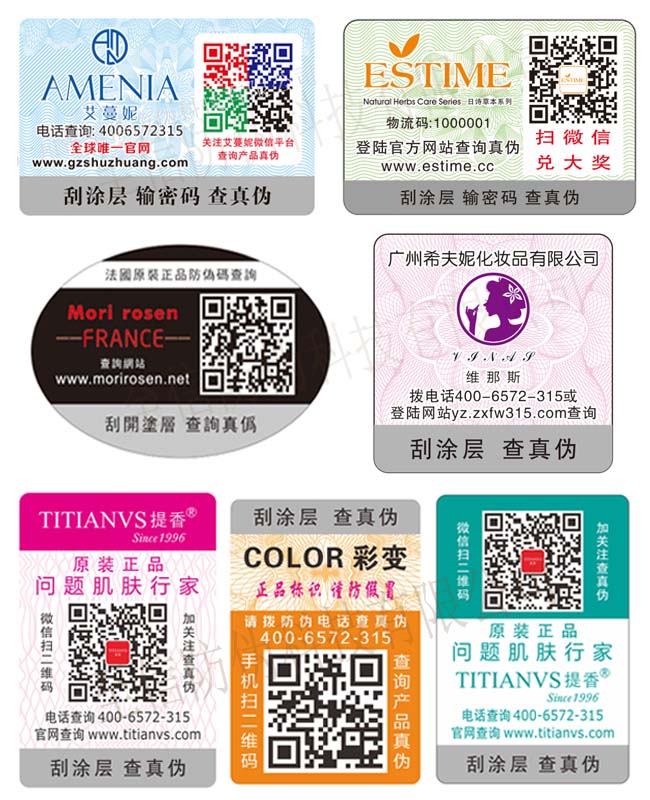 现代社会最流行和最有效的防伪方式就是二维码防伪技术,利用二维码高密度编码,信息容量大、范围广、容错纠错、译码可靠性高、保密防伪性好及成本低持久耐用等特性,将二维码与标签相结合,采用了二维码和密码一对一结合,不容易造假,所有数据直接保存到数据库里面,数据不容丢失。另外,二维码防伪技术验证真假十分方便,工作人员或消费者扫描二维码输入密码就可以验证真伪。 可在应用多种防伪技术,如 温变防伪技术、滴水防伪技术、荧光防伪技术、断笔技术、微缩文字技术、安全线防伪等。
