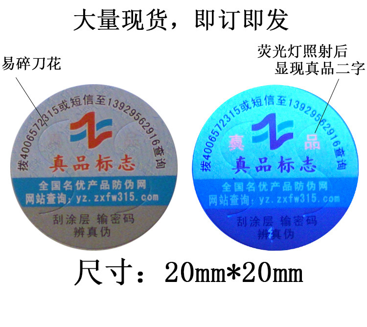 此款是通用防伪标,如果您不需要定做防伪标,可选此款通用标,有大量现货,下单即发快递,无需等待 |