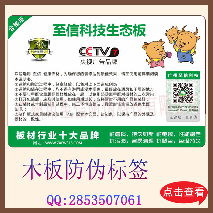 建材防伪标签 木板防伪 官方二维码查询真伪 防伪码 流水码印刷