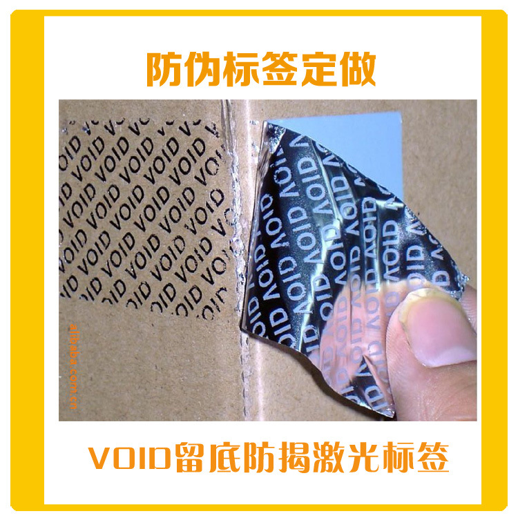 VOID防伪标签原理VOID防伪标签也称揭开留底防伪标签,是一种主要以材料为主的防伪标签,揭开型VOID防伪材料,也称防伪字模,是一种基材大部分为塑料薄膜的揭示型不干胶防伪材料。包括揭开镂空留文字、留图案;揭开时分层并且显示隐含在层间的内容,可防止未经许可的揭启、移动、再贴。多用于物流标签、防盗封口...