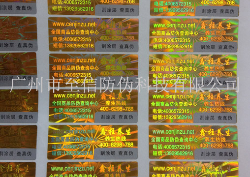 激光防伪标又称镭射标、全息标,从不同角度观看能反应出不一样彩色效果的一种防伪标。激光防伪技术包括激光全息图像防伪、加密激光全息图象防伪和激光光刻防伪技术三方面。