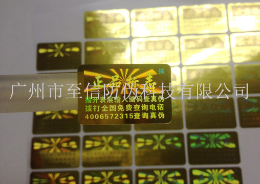 一次性激光防伪标:撕毁无效防伪标,标签粘贴后撕毁无效,不能再次使用;