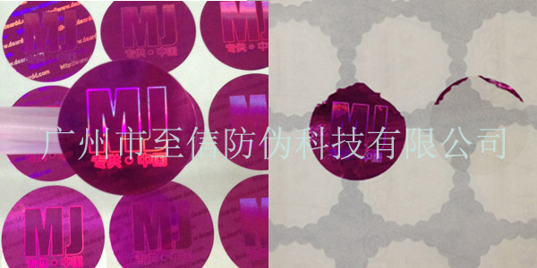 一次性激光防伪标:撕毁无效防伪标,标签粘贴后撕毁无效,不能再次使用;
