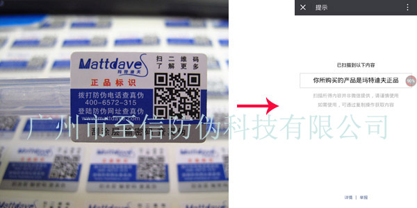二维码内容:可连接微信公众号、公司官方网站、天猫淘宝店铺、防伪查询网站等根据客户的需要而定制,