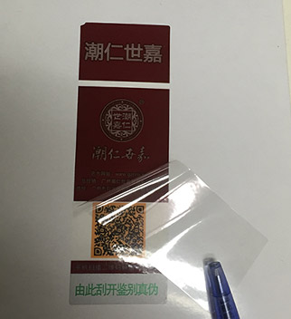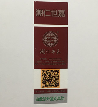 塑膜防伪标签:同样具备带防伪密码,可印刷固定二维码、微信查询方式等,对于变动二维码的话 就有所保留,印刷撕开后二维码会破坏影响扫描。防伪涂层是丝印在塑膜表面的。