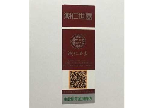 塑膜防伪标签:同样具备带防伪密码,可印刷固定二维码、微信查询方式等,对于变动二维码的话 就有所保留,印刷撕开后二维码会破坏影响扫描。防伪涂层是丝印在塑膜表面的。