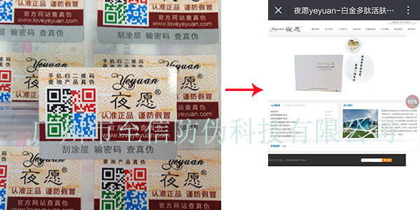 扫描标签上彩色二维码,进入企业官网后方可查询产品真伪,可宣传公司产品、企业文化等内容。